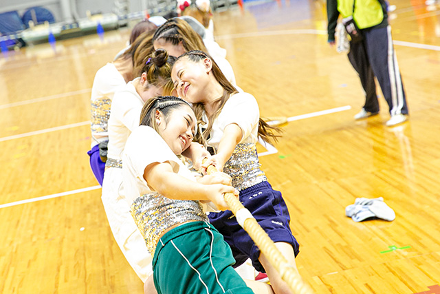 ▲-競技はみんな本気!ビューティアドバイザー学科のクラスみんなで団結して優勝を目指しました!-