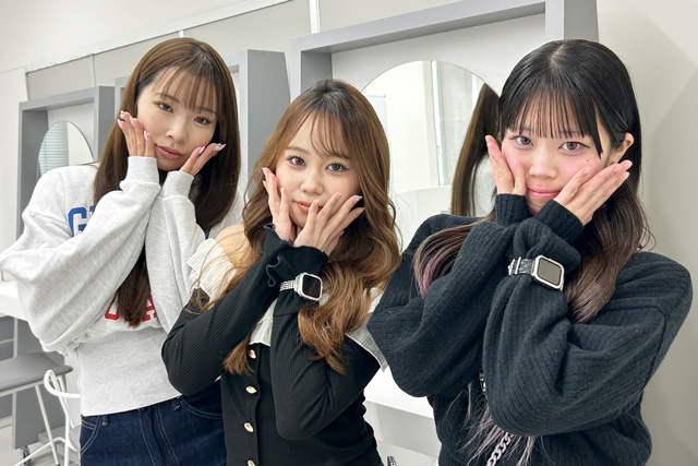 ▲-今回一緒にインタビューに答えてくれたビューティアドバイザー学科の仲間と笑顔で記念撮影。木戸さん(Shu uemura)、山崎さん(YSL)、宮田さん(GIVENCHY)にそれぞれ内定-