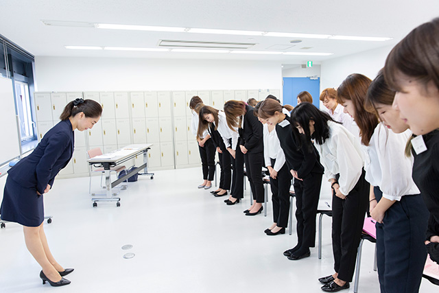 ▲-ビューティプロでは毎年在校生から役立ったと評判の「サービス接遇」や「ビジネスマナー」など就職対策の授業が充実!-