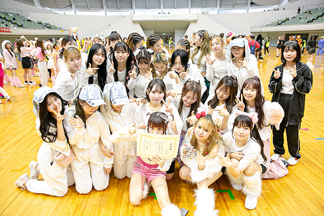 ▲-ビューティアドバザー学科はみんな同じ夢に向かってがんばる仲間。目標が同じだからこそ、資格取得も就活も支えあってがんばれます。もちろんイベントも一致団結。一丸となってがんばり準優勝!-