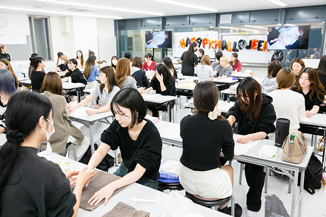 ネイルの授業ではハロウィンにちなんだイラストを描いていき