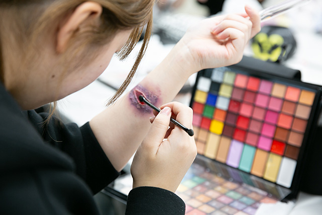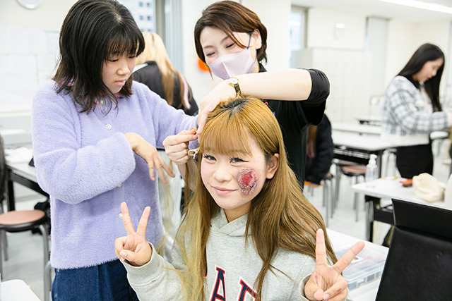 メイクの授業では傷メイクを・・・👀とてもリアルです😎