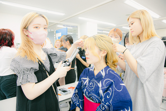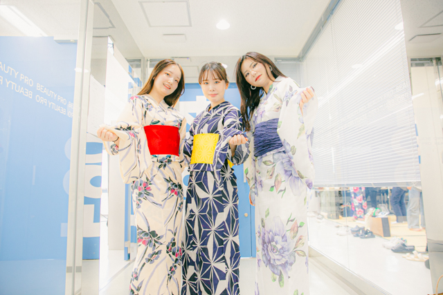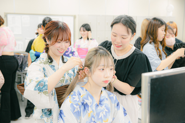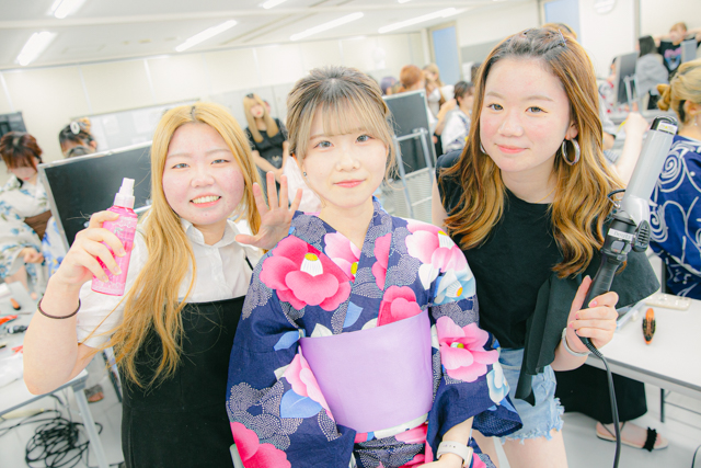 自前の浴衣を持って来ている学生も多く、おしゃれな着付けも出来たりと