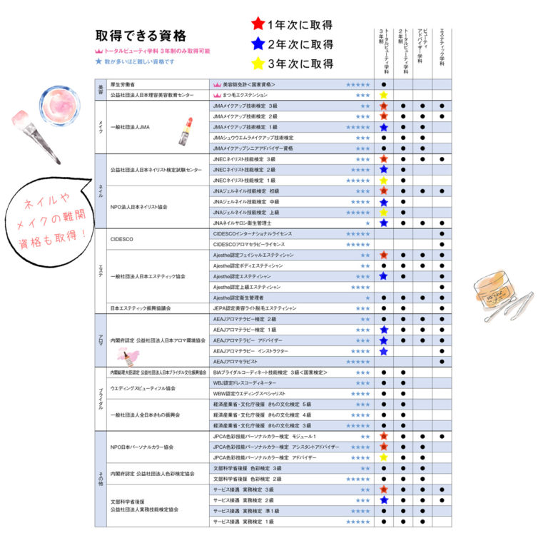 ビューティプロでは、校内受験で取得できる資格がたくさんあります。