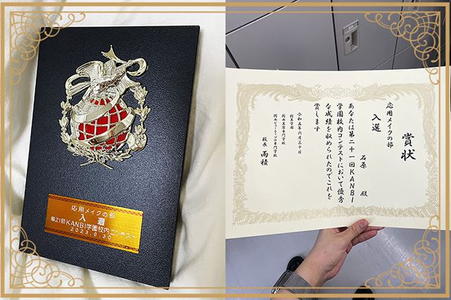 初めて参加したコンテストで緊張しましたが、自分でメイクプランを考えモデルに施術することがとても楽しく、いままで習ってきたこと、自分の実力を試すことができ、成長したなと感じました。