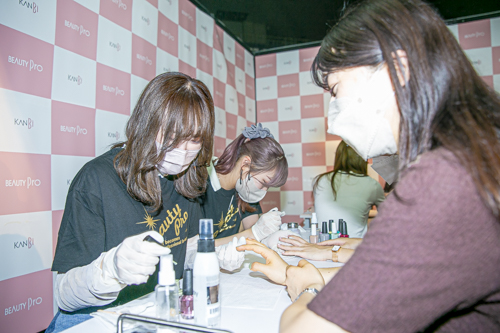 ヘアアレンジと、ネイル体験ブースでは関西ビューティプロと、