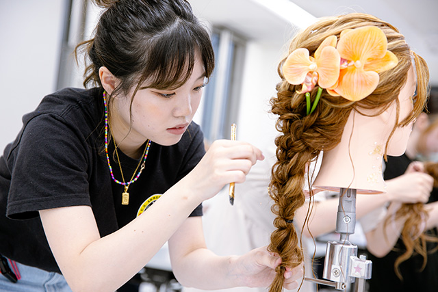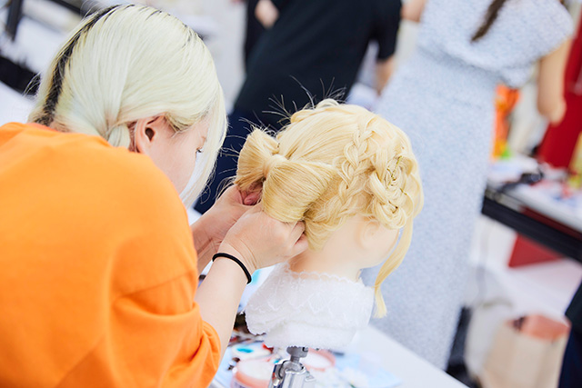 種目はカラー展示やワインディング、ヘアアレンジ、カット等様々な競技があり、