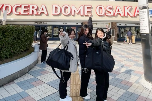 ▲-関西コレクションの会場で、ビューティアドバイザー学科の仲間と☆-