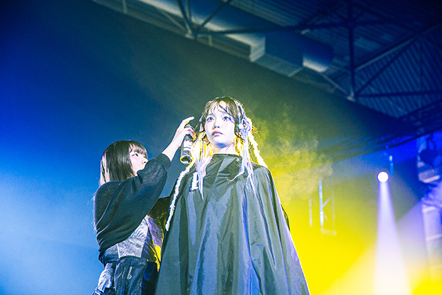 ▲-スポットライトを浴びながらステージでヘアメイクを披露しました-