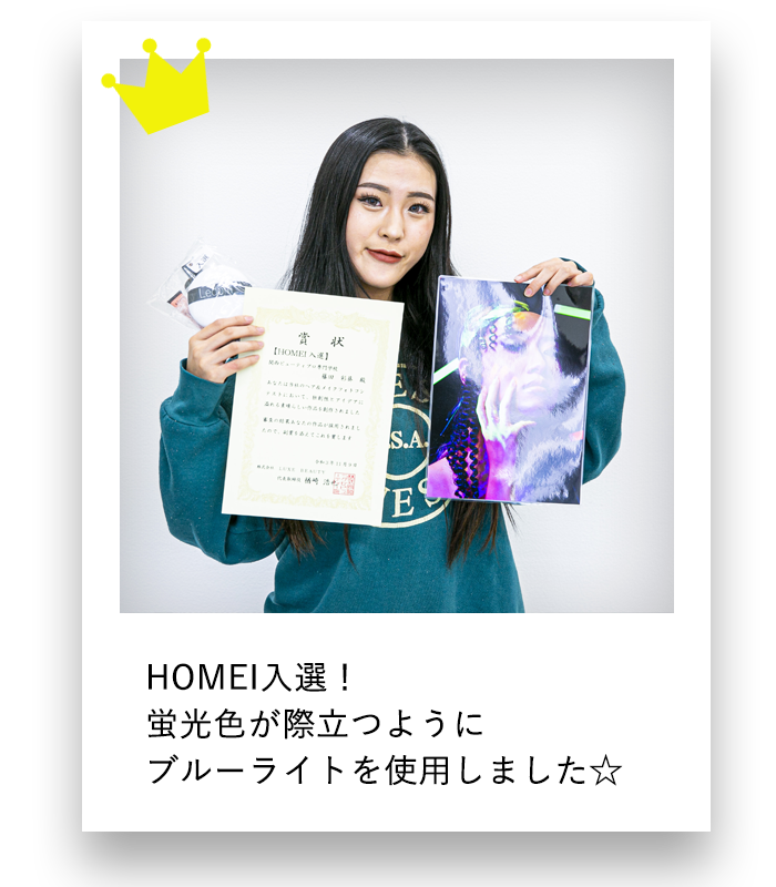 今年のテーマは「「Re start ~再び動き始める時~」。 力作揃いの参加作品のなか、トータルビューティ学科(2年制)の学生が、HOMEI入選を受賞しました!