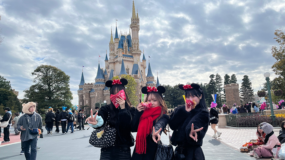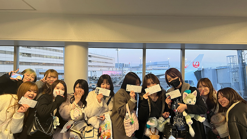 修学旅行で東京ディズニーランドと東京ディズニーシーへ行きました。卒業を前にした最後の大きなイベント。飛行機で東京へ☆夢の国で2年間を共に歩んできた仲間たちと楽しい時間を過ごすことができました。