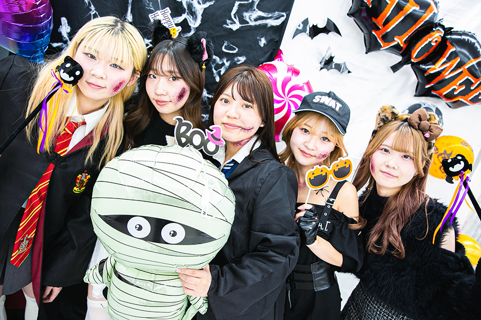 ハロウィーンの特別イベントを開催☆この日は仮装OK!『傷・痣メイク』やハロウィーンイメージのシーリングネイルやミラーネイル、そしていろんな可愛いシュシュ作りなど面白い授業がいっぱい☆いつも資格取得に向けてがんばる学生達もちょっと息抜き。楽しい時間を過ごしました。
