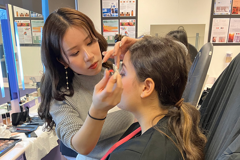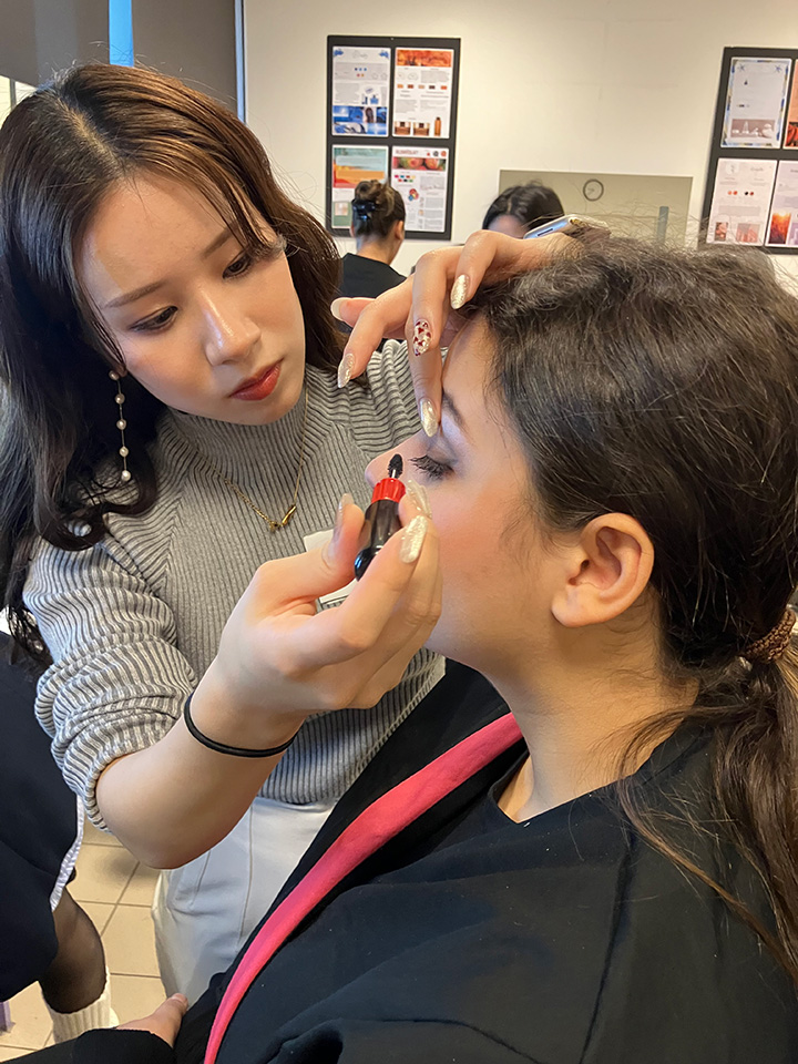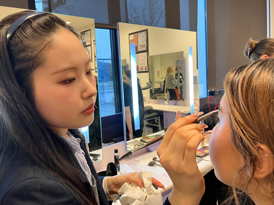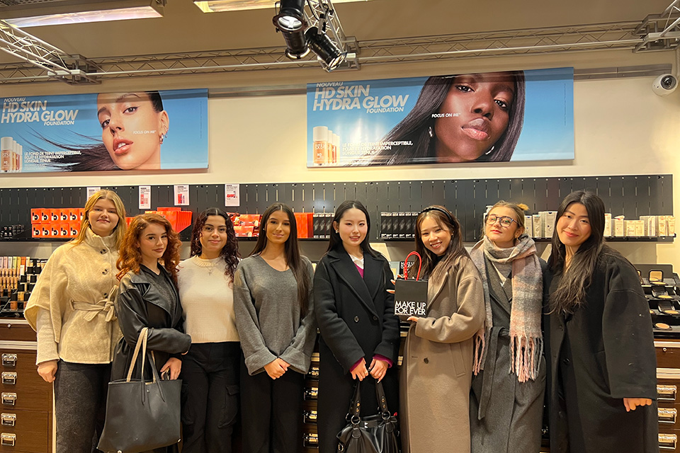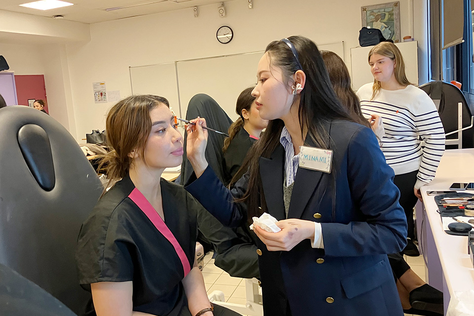 この交換留学では、平日は姉妹校のリセ・エリザ・ルモニエ校でメイクアップ、エステ、語学などの授業に参加します。