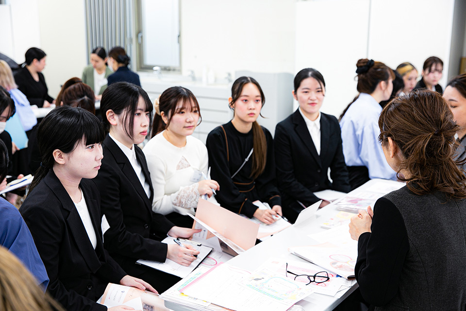 エステ、美容、メイク、ネイル、ブライダル等さまざまな分野のお話を聞くことができ、より広い視野を持って就職活動へのぞむ機会となりました。