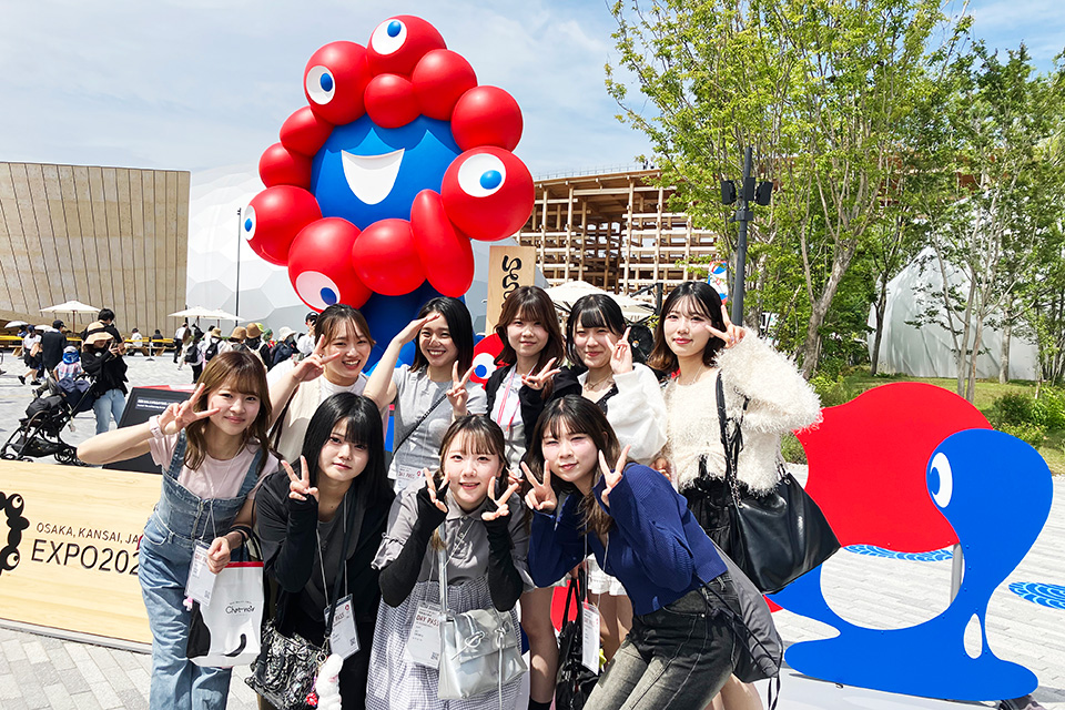 トータルビューティ学科の学生達も満面の笑みで「万博を楽しんでくださいね!!」と笑顔でお見送り💕