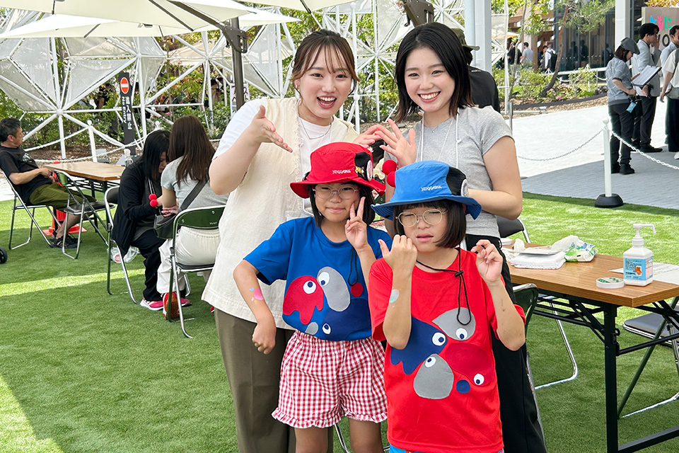 お揃いのミャクミャクコスプレがカワイイ姉妹。