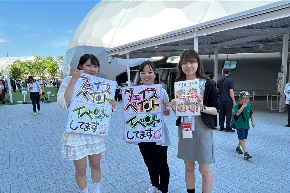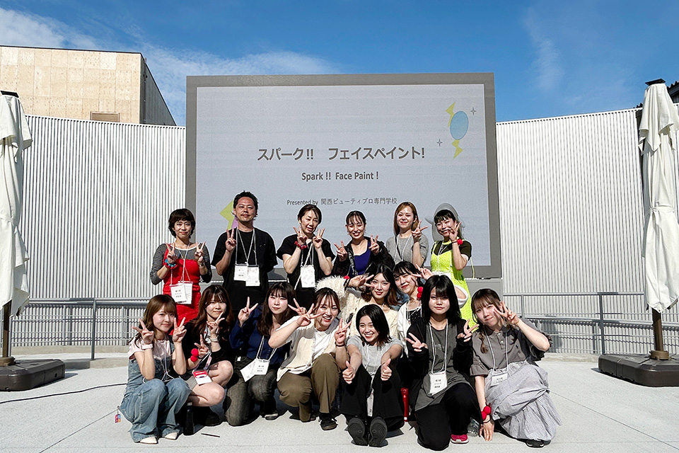 6月13日(金)、大阪・夢洲で開催されているEXPO2025 大阪・関西万博内、電力館屋外ステージで、関西ビューティプロ専門学校のトータルビューティ学科3年制の学生達がこの日限定☆フェイスペイントのイベントに参加しました!