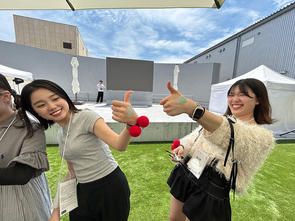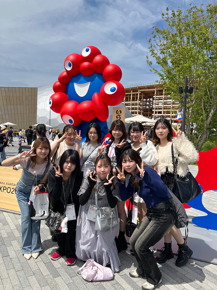 トータルビューティ学科の学生達も満面の笑みで「万博を楽しんでくださいね!!」と笑顔でお見送り💕