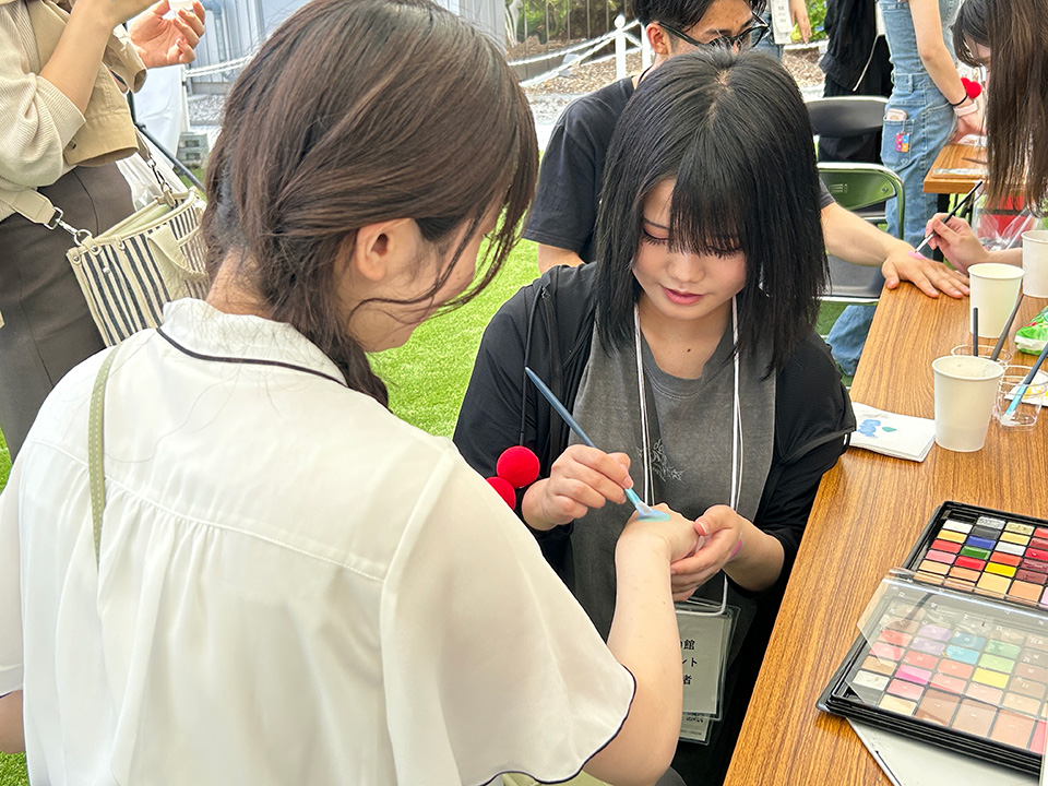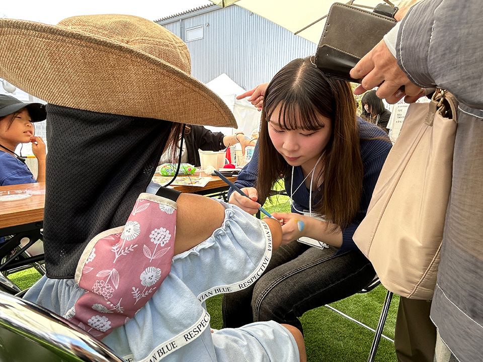 電力館に並びながら、フェイスペイントをやっている様子を眺めるお客様の姿も。