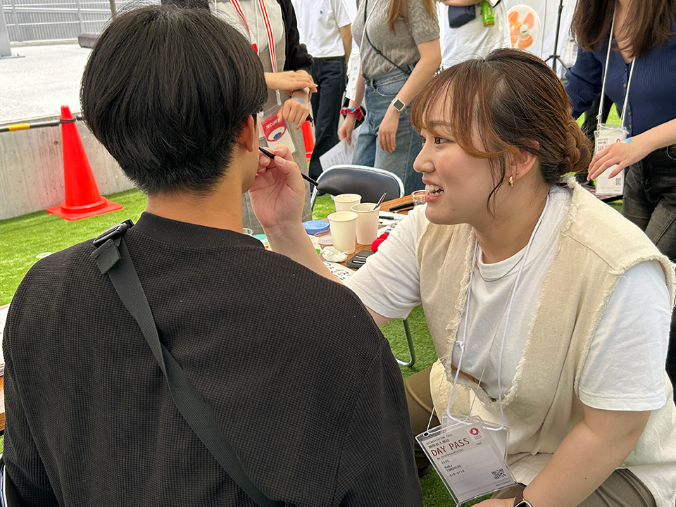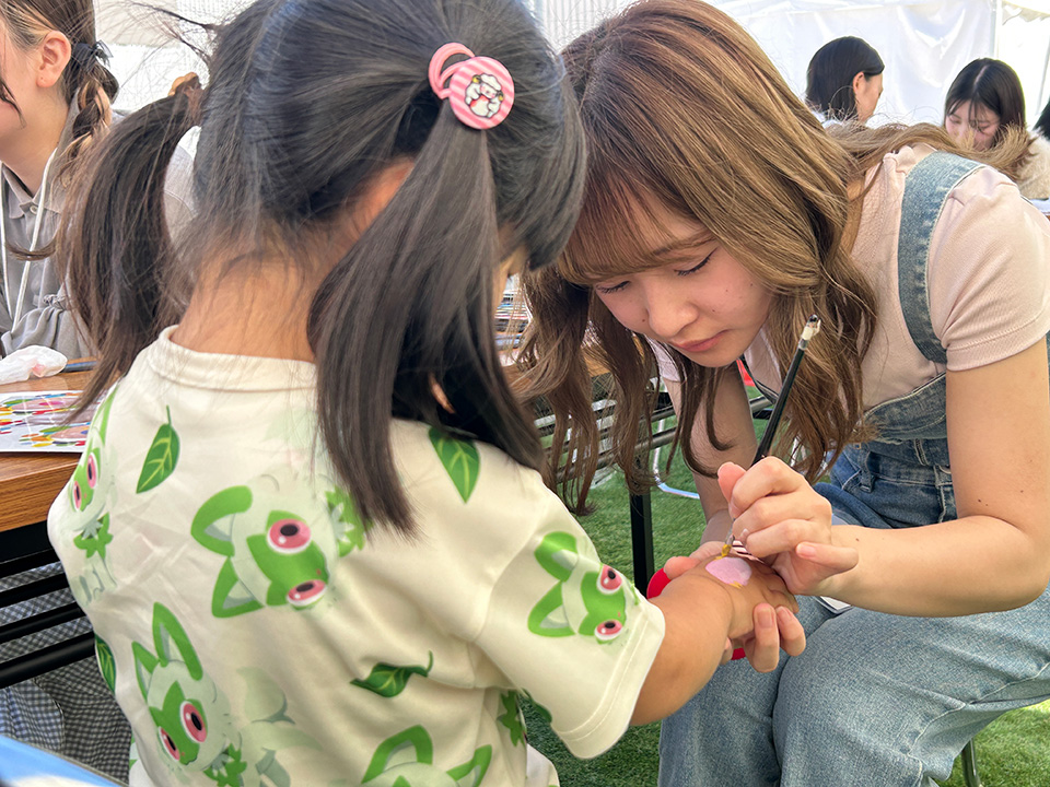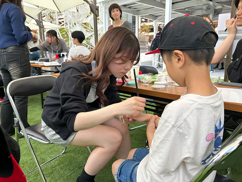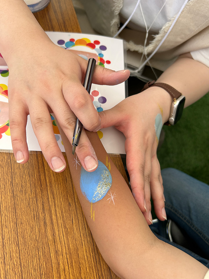 たくさんのお客様と会話を楽しみ、そのご要望に応え、時間内にフェイスペイントを施していく。