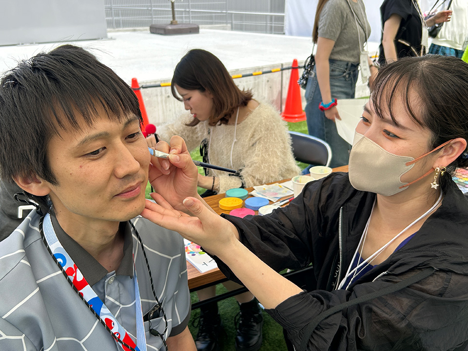 『電力館 可能性のタマゴたち』屋外ステージでフェイスペイント