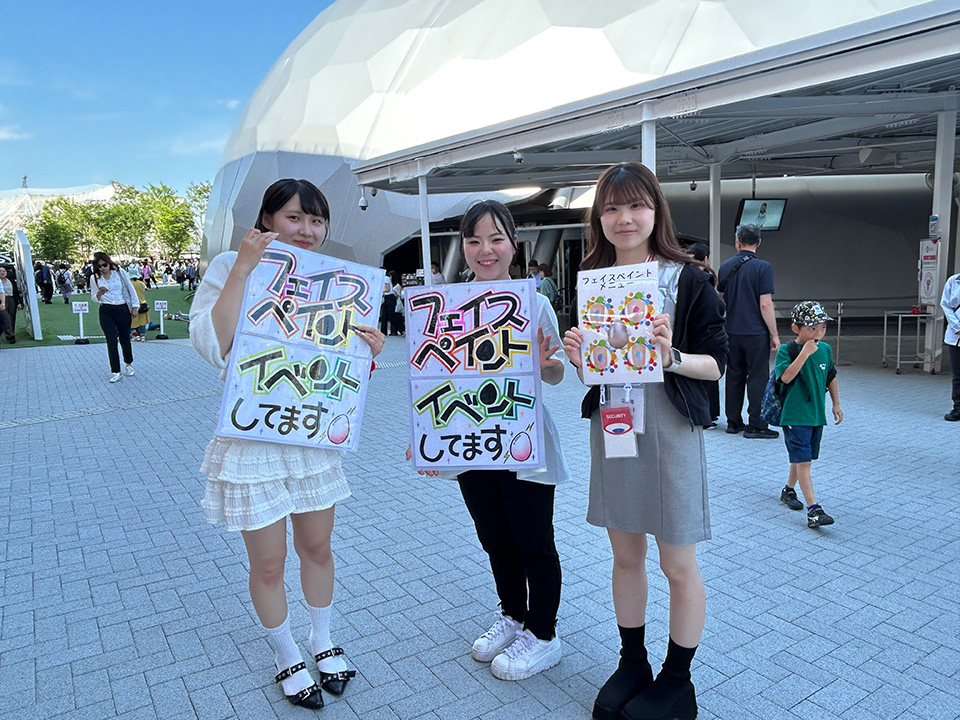 6月13日(金)、大阪・夢洲で開催されているEXPO2025 大阪・関西万博内、電力館屋外ステージで、関西ビューティプロ専門学校のトータルビューティ学科3年制の学生達がこの日限定☆フェイスペイントのイベントに参加しました!