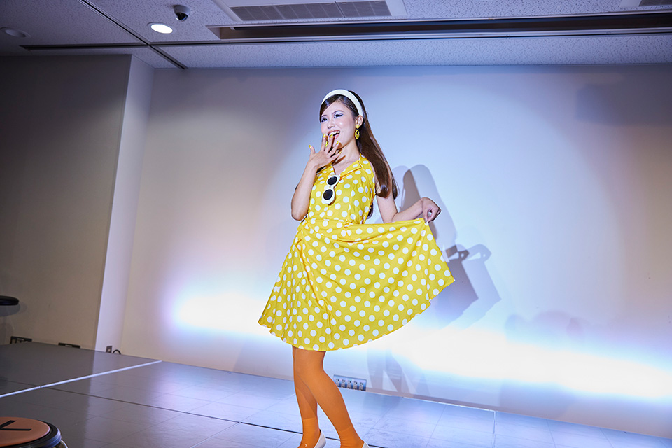 第一部のオープニングは平成ギャル達で始まり、1960年代のお人形スタイル、カーリーなヘアスタイルと華やかなカラーメイクの1970年代、そしてビビットなカラーが特徴的な1980年代と続きます。