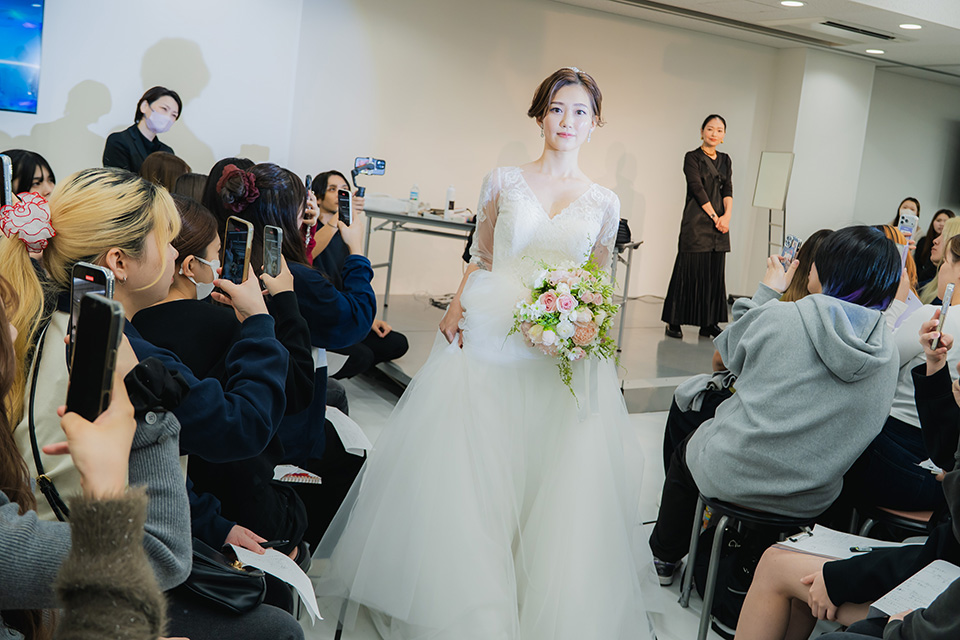 全国の花嫁様から絶大な支持を受ける人気ヘアメイクアップアーティスト服部由紀子先生のブライダルヘアメイクステージ。