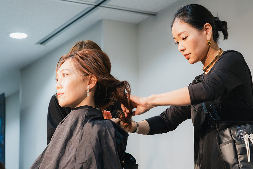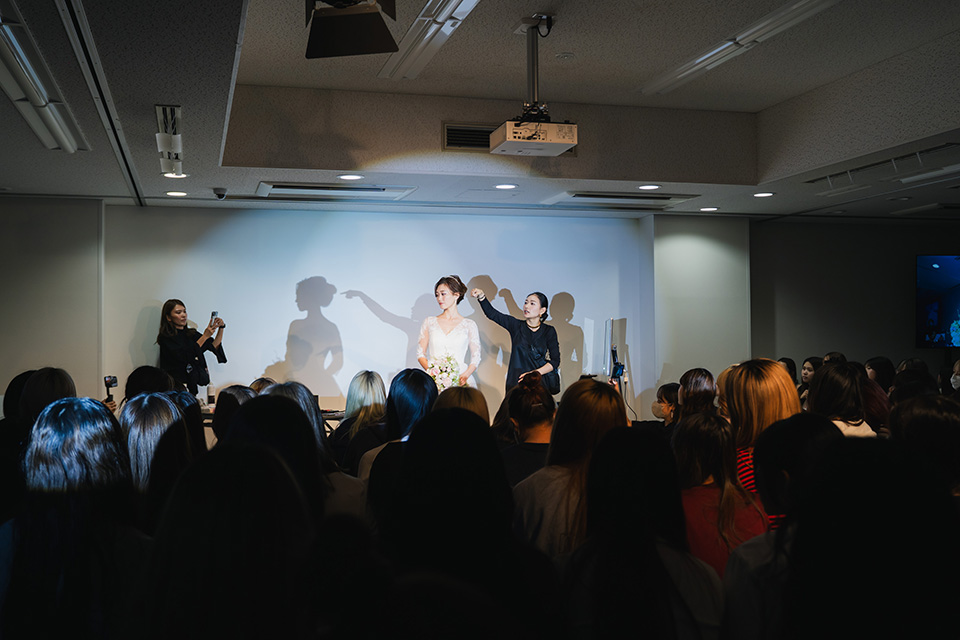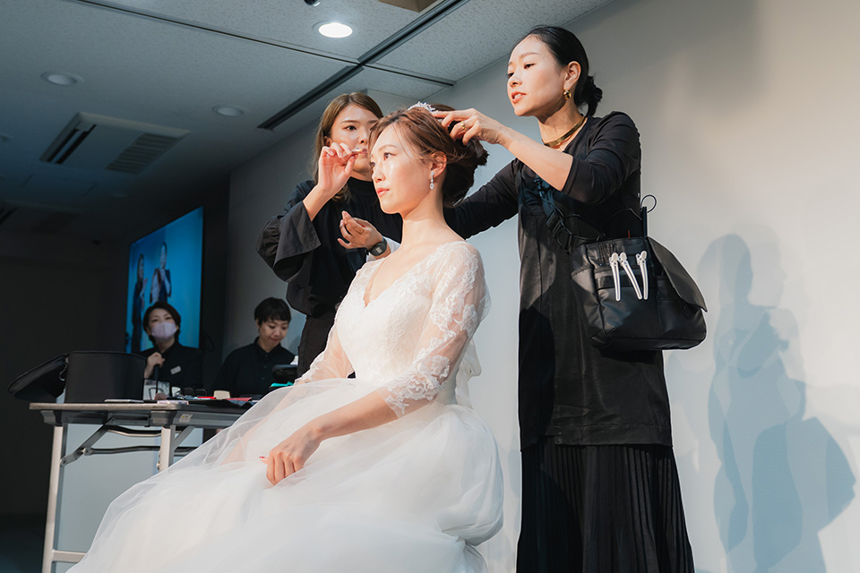 全国の花嫁様から絶大な支持を受ける人気ヘアメイクアップアーティスト服部由紀子先生のブライダルヘアメイクステージ。