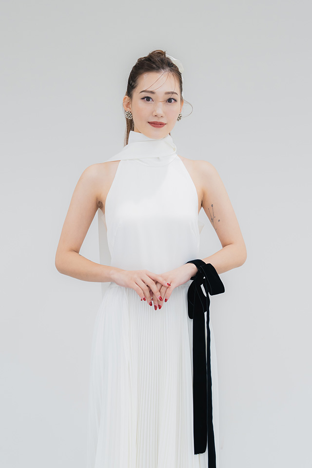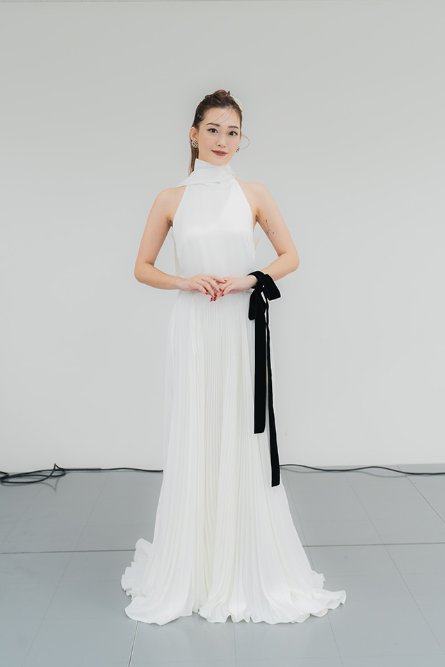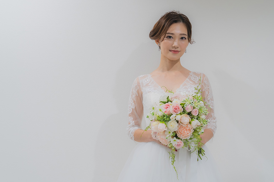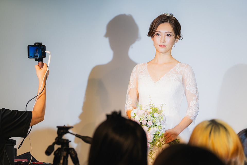 まずは、ホテルウエディングなどでもリクエストの多い、ロイヤル感のあるトラディショナルなスタイルを披露していただきました。