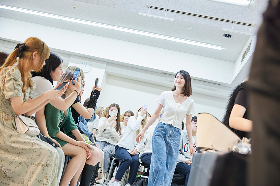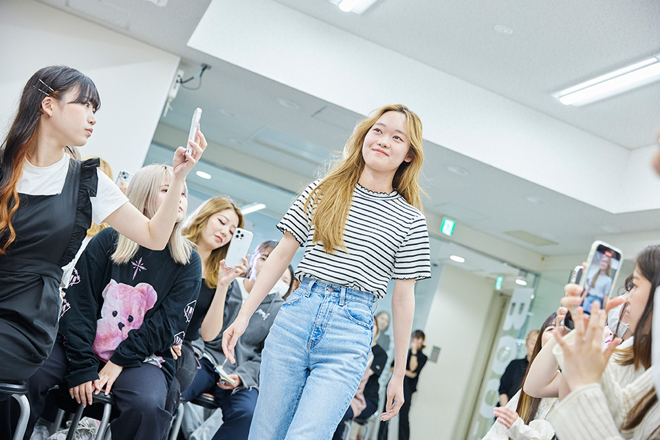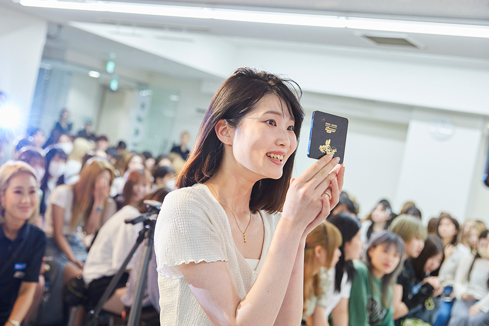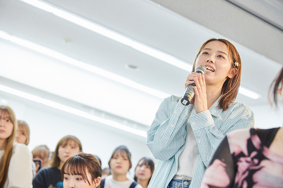 イベントやテレビ出演などの他、コスメのプロデュースや監修など、幅広く活躍されているヘアメイクアップアーティスト長井かおり先生が、ビューティプロで素敵なステージを披露してくださいました。すばらしい技術はもちろん、気さくな人柄と、そのお話に学生たちは興味深々。質疑応答の際も、学生からの問いに真摯に答えていただき、素晴らしいステージとなりました!