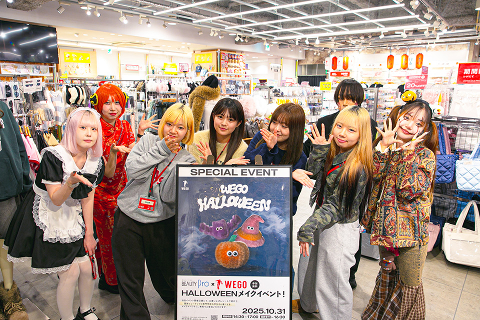 若い世代に大人気のアパレルショップ『WEGO』×ビューティプロのハロウィンイベント! ハロウィン当日に来店されたお客様にハロウィンメイクを提供しました♪