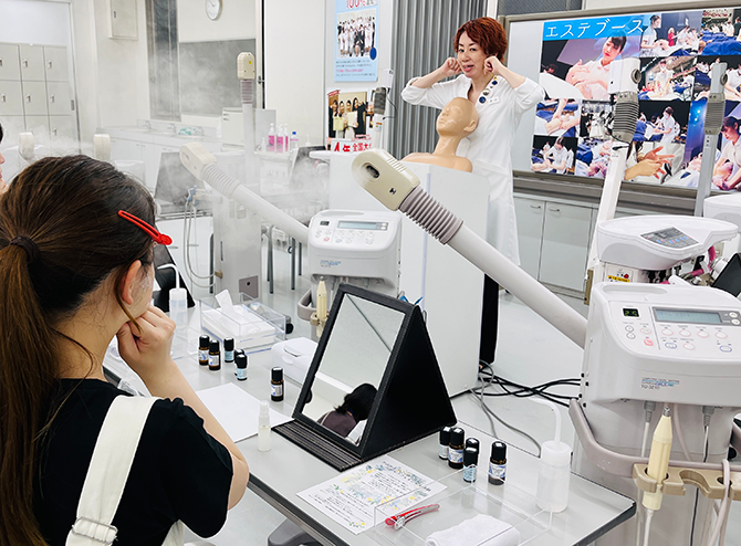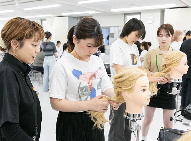 関西ビューティプロ専門学校では、メイク、ヘアアレンジ、ネイル、エステなどのレッスンから自由に選んで美容の世界を体験できるオープンキャンパスを開催中です。