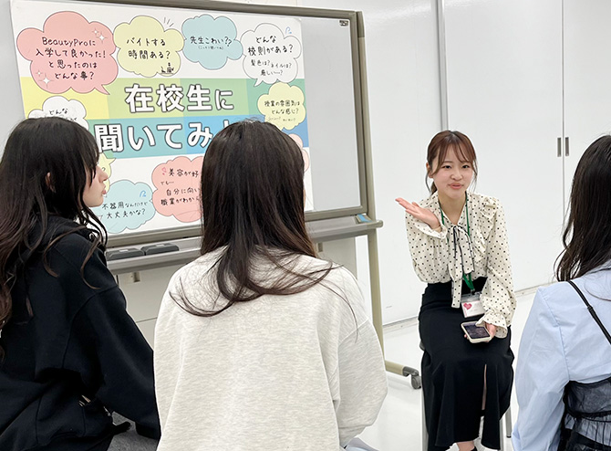 学校見学では、授業風景や施設の見学など、ビューティプロ生のリアルな様子を